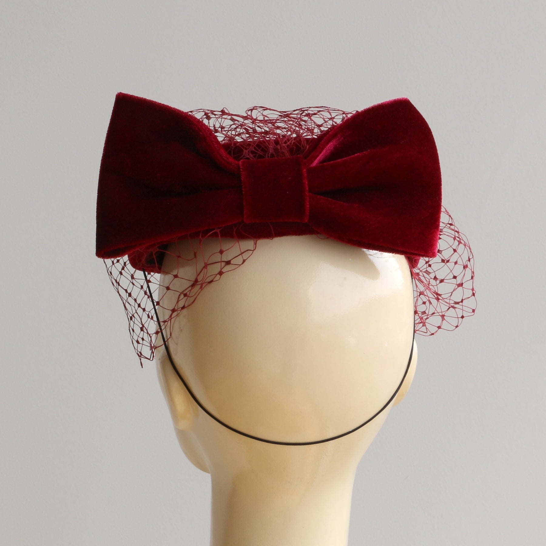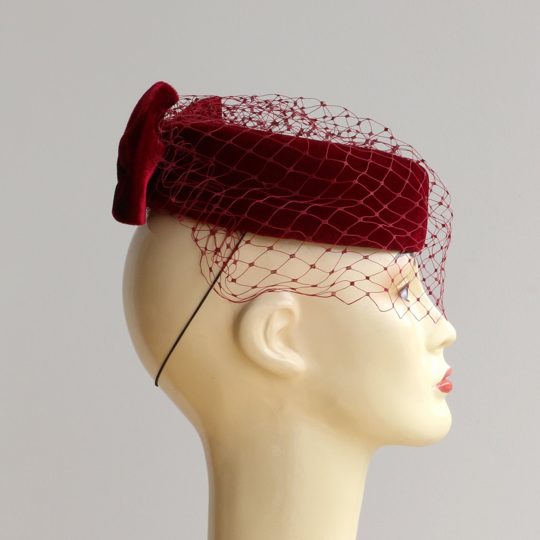 Velvet Pillbox Hat with Bow and Veil