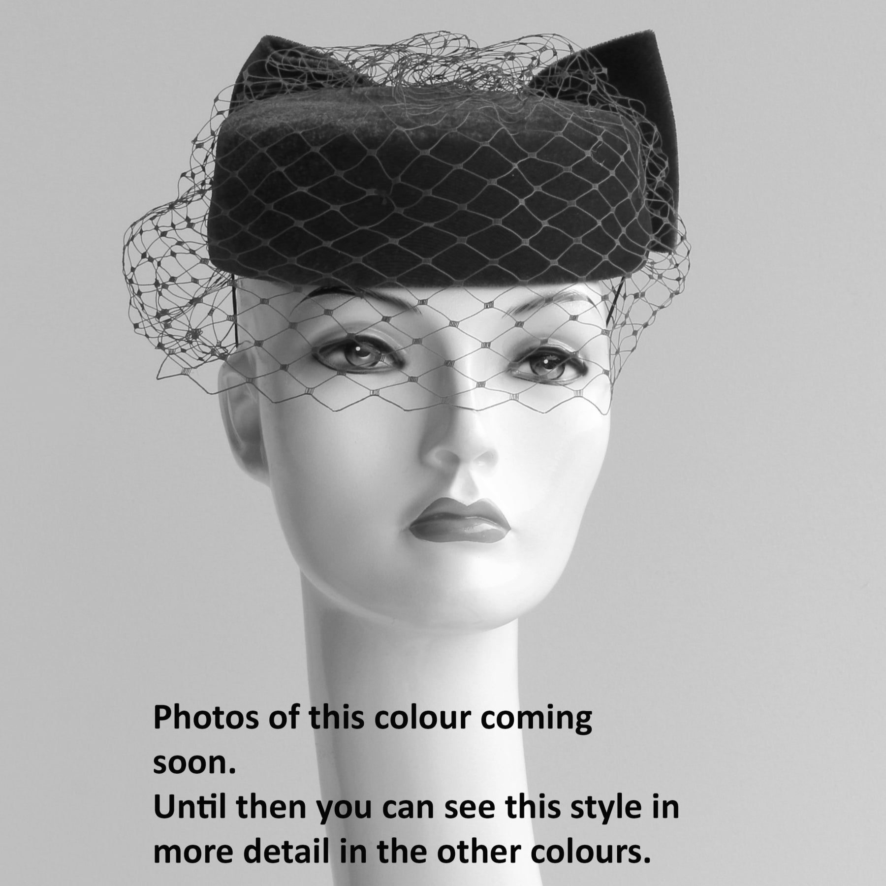 This is a classic pillbox percher hat - think "Jackie O" style. In rich cotton velvet with a lovely large bow at the back. Its toning net veil can be worn up from your face but we love it drawn down, giving a very glamorous look with more than a hint of retro-style. Held securely on your head by a fine elastic which can easily be tucked under your hair. Ideal for weddings, Garden Party, christening or for any occasion where you want to show a polished look, especially for evening events or those in the cooler seasons of Autumn and Winter.