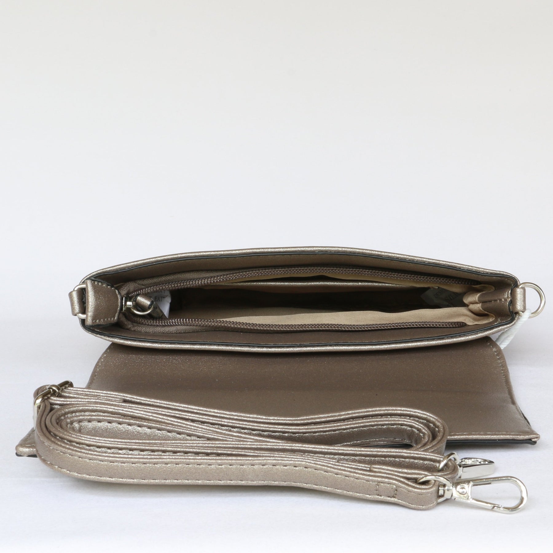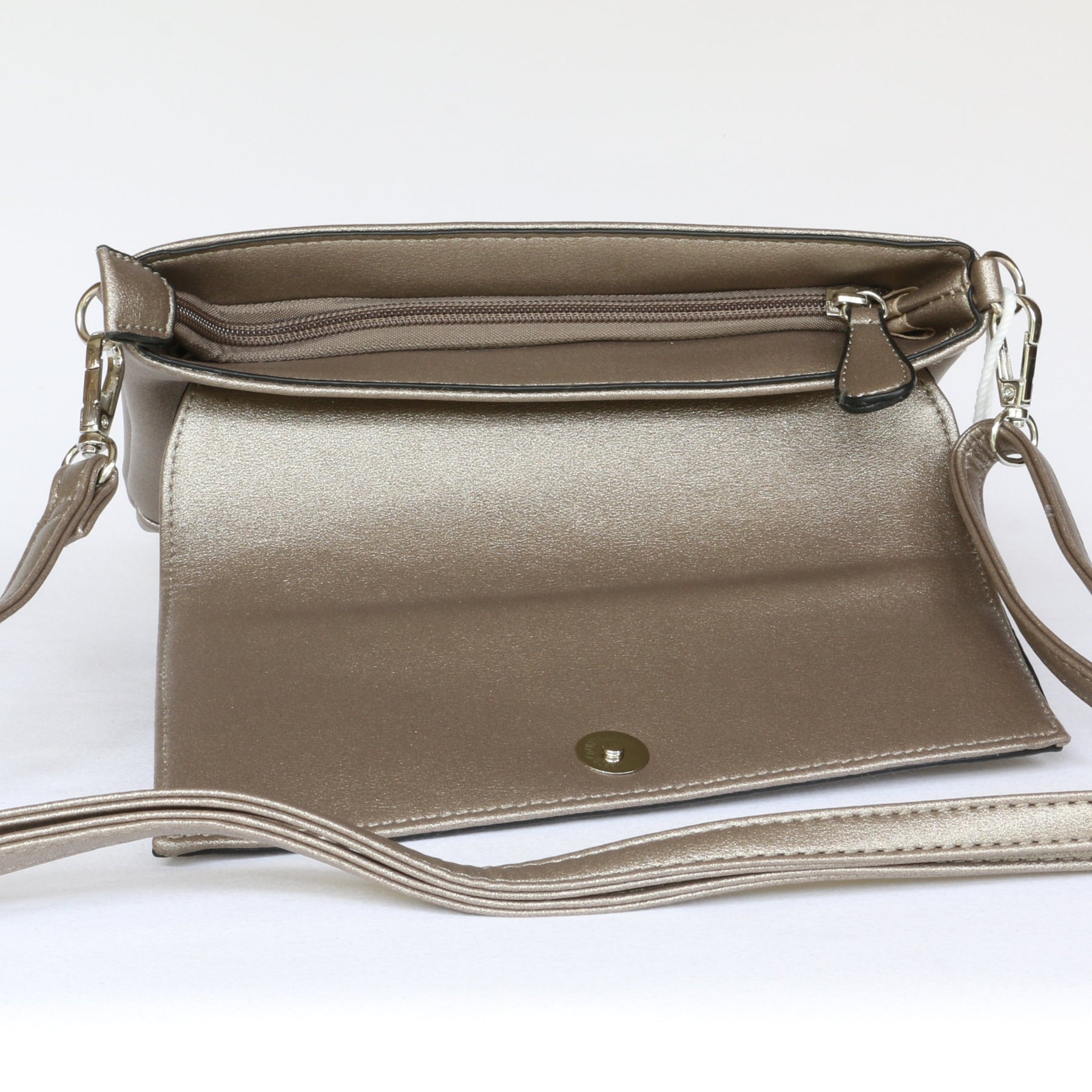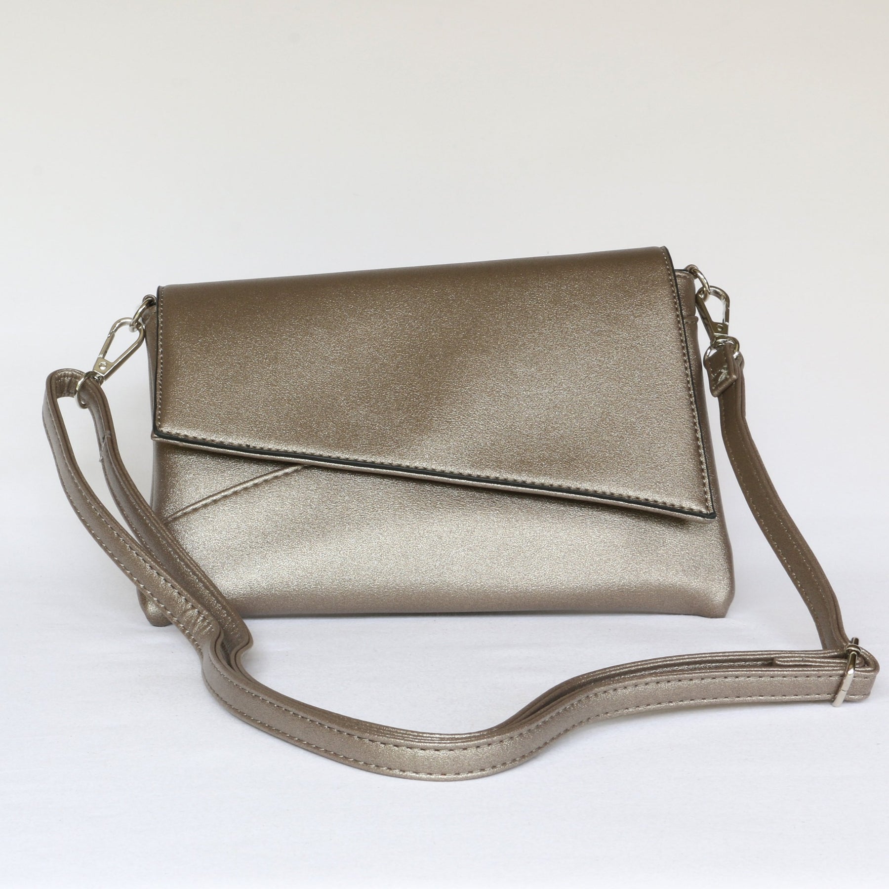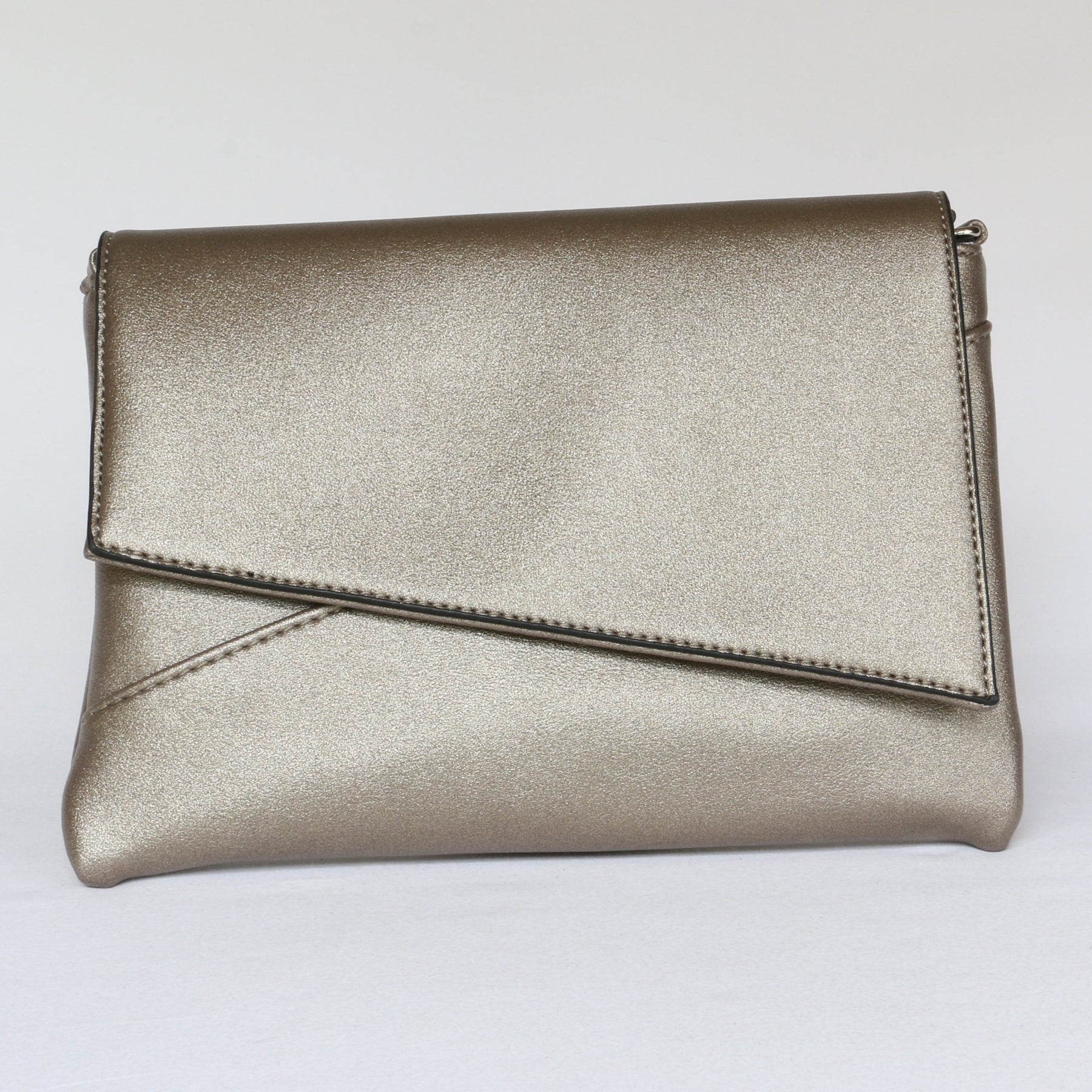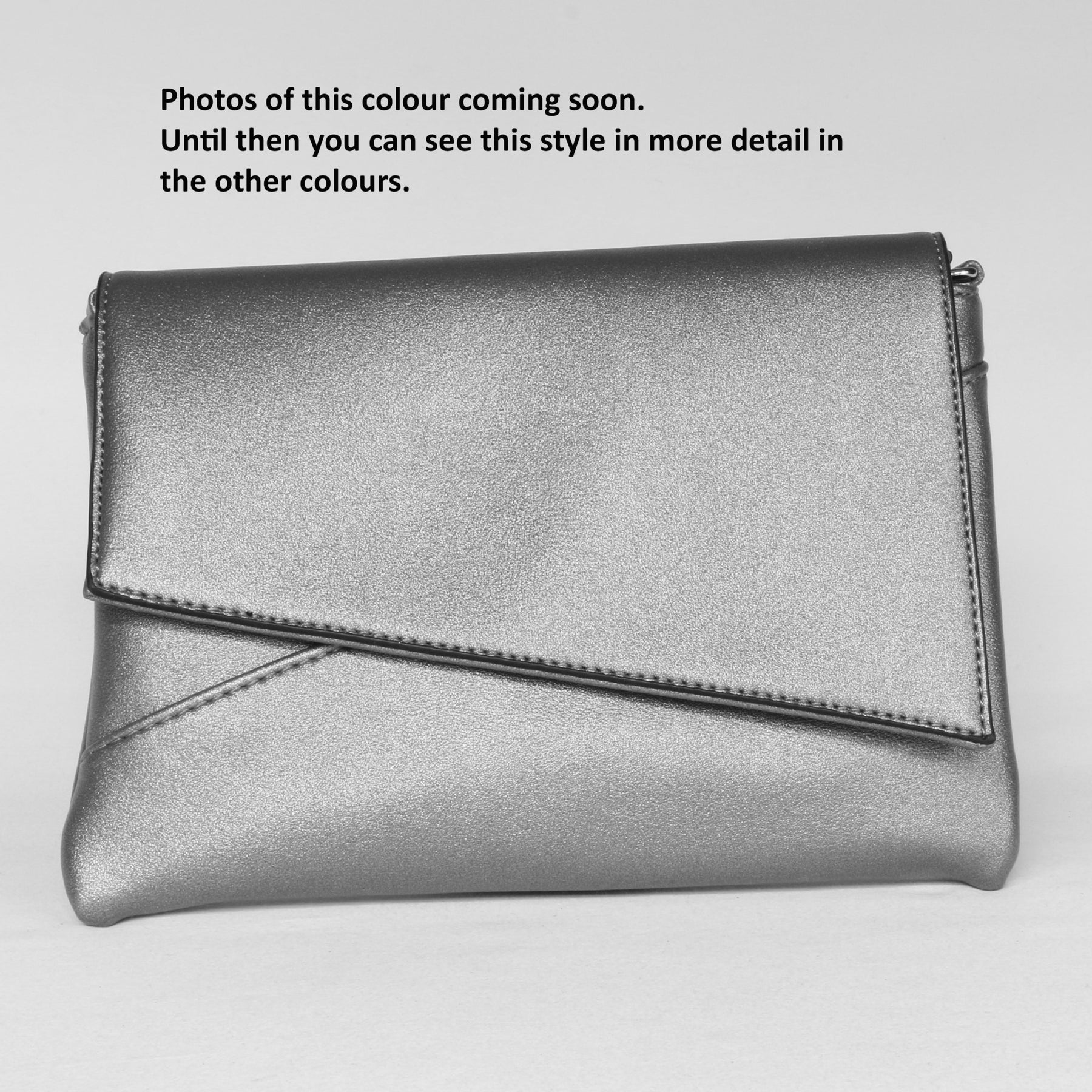 Elegant ladies clutch bag in high quality faux suede with an asymmetrical flap, concealed magnetic catch. Use the adjustable detachable strap to transform it to a handbag, shoulder bag or crossbody bag.
