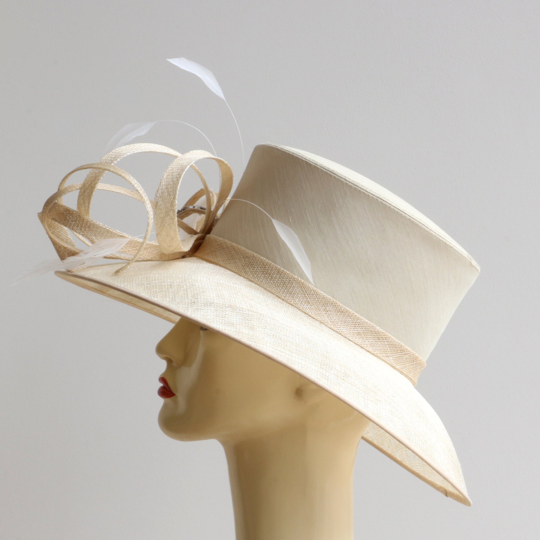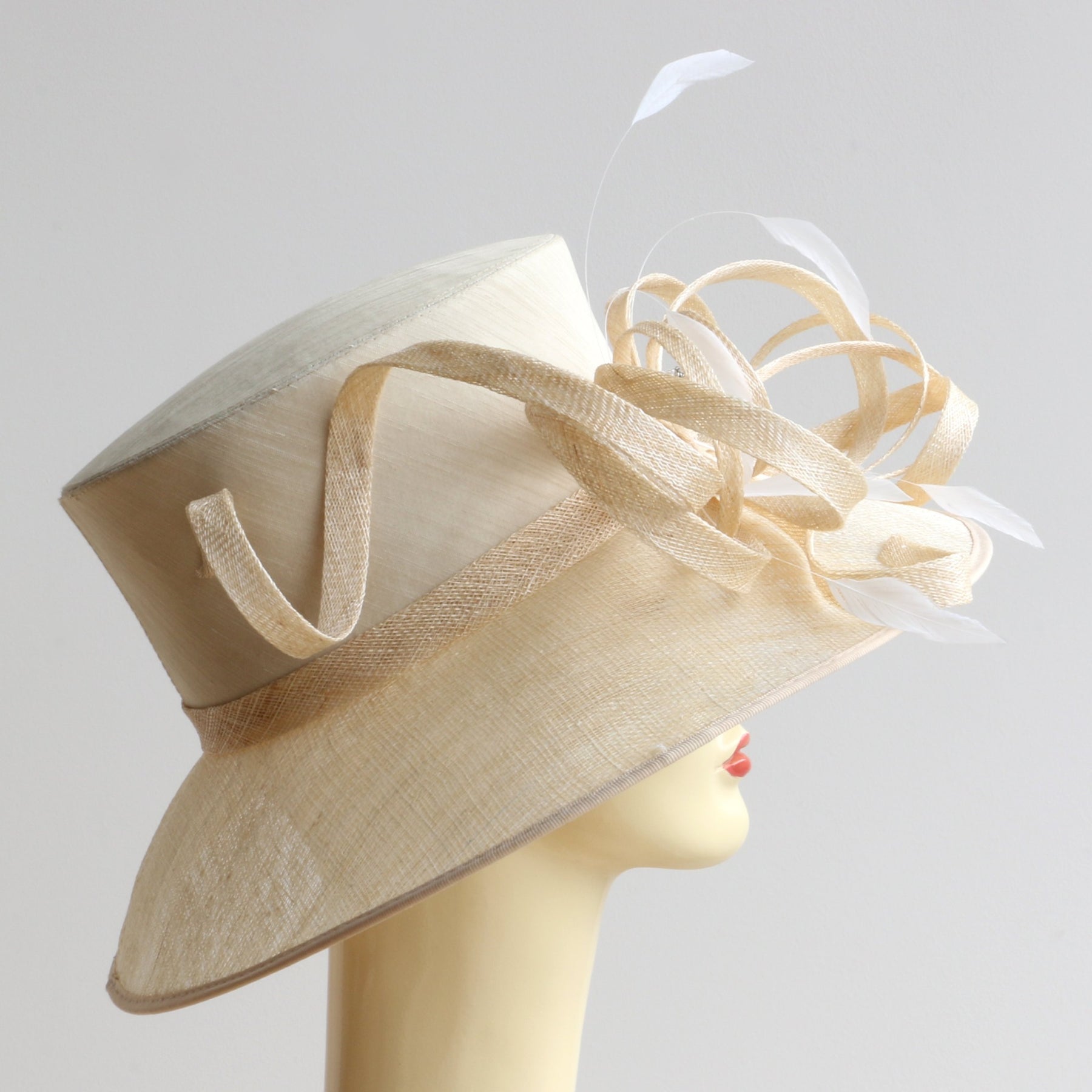 A perfect occasion and wedding hat, with its brim downturned it is perfect for Mother-of-the-Bride, Mother-of-the-Groom, a special guest at a wedding, for Ascot, a Garden Party and more.