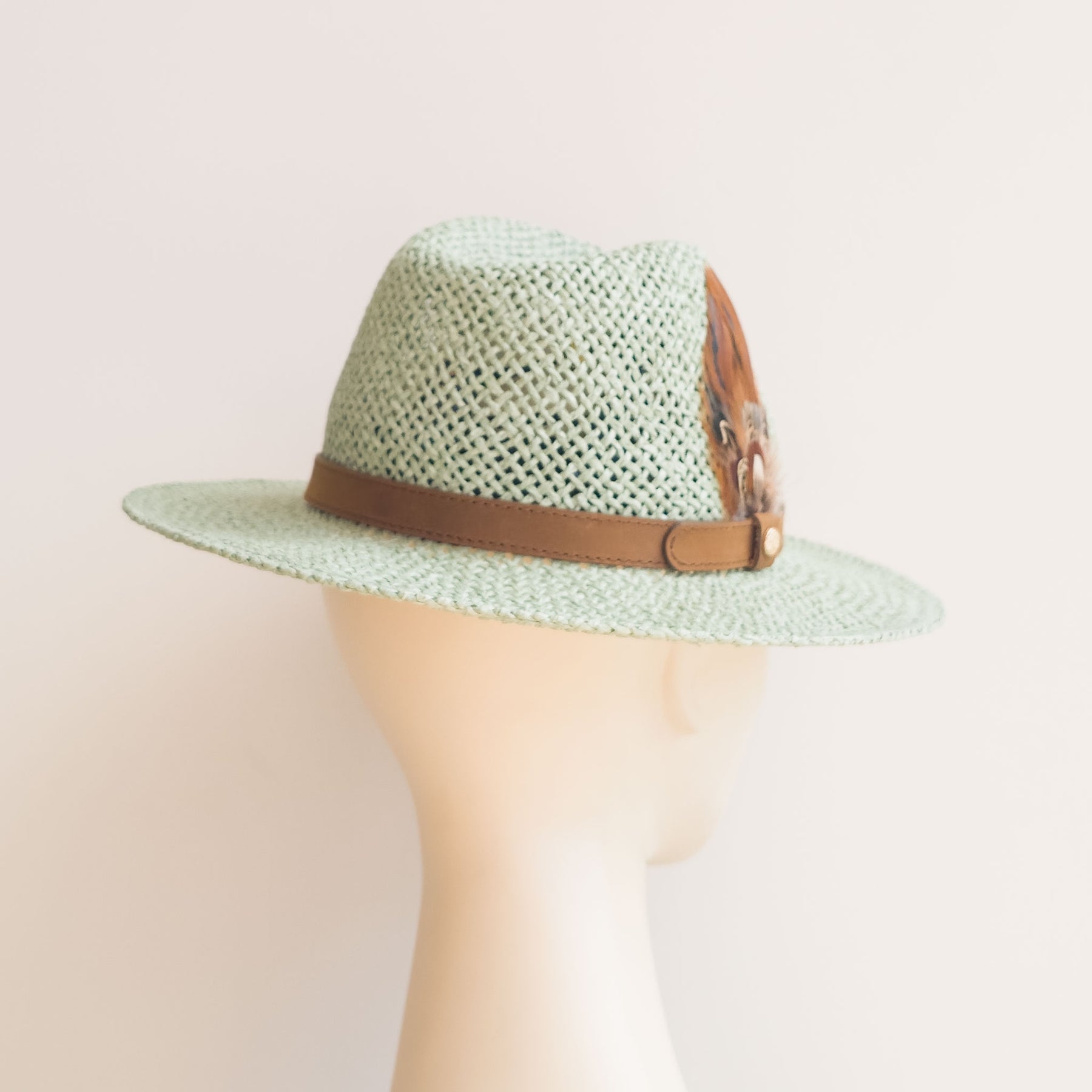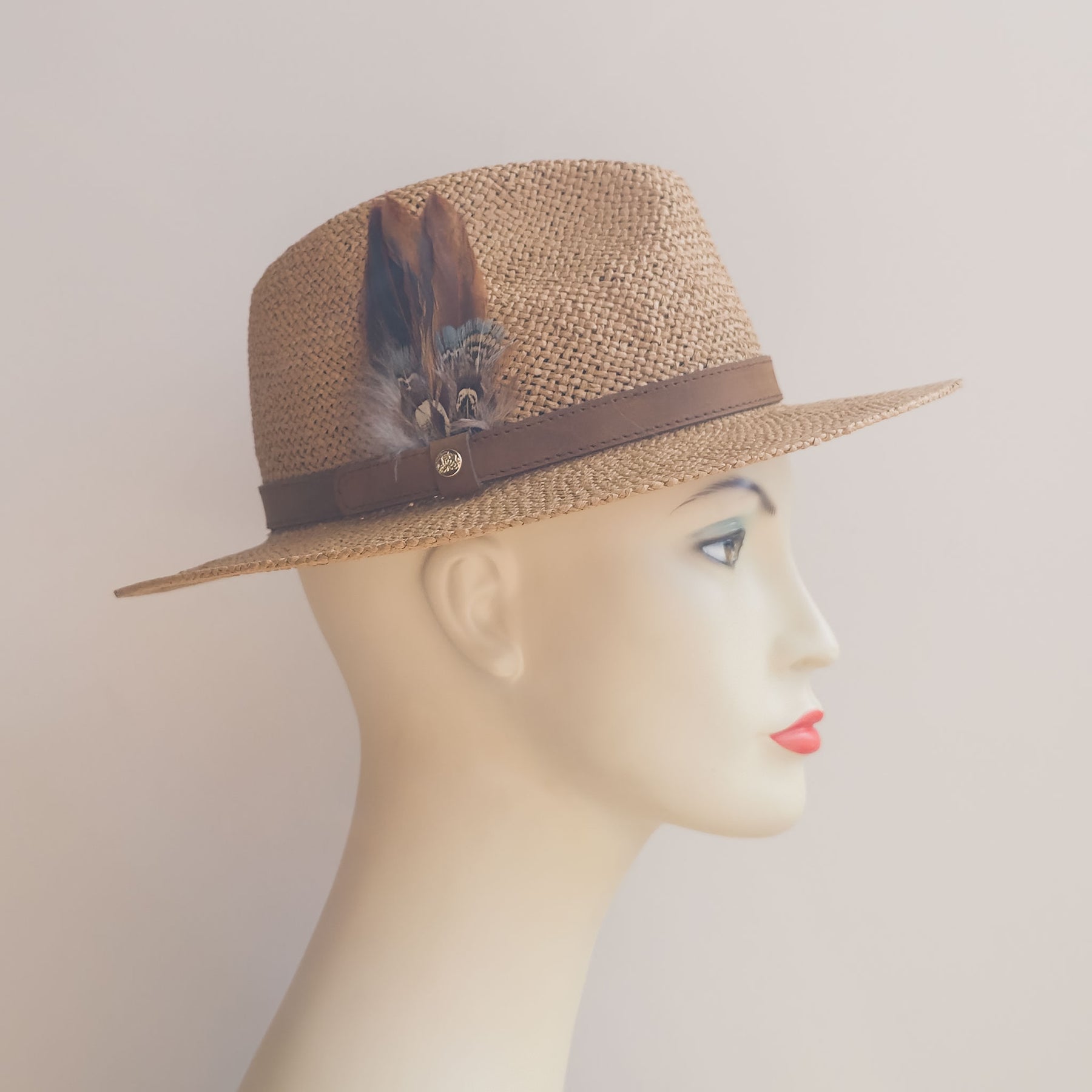 Summer Fedora Sun Hat with Leather Band and Feathers