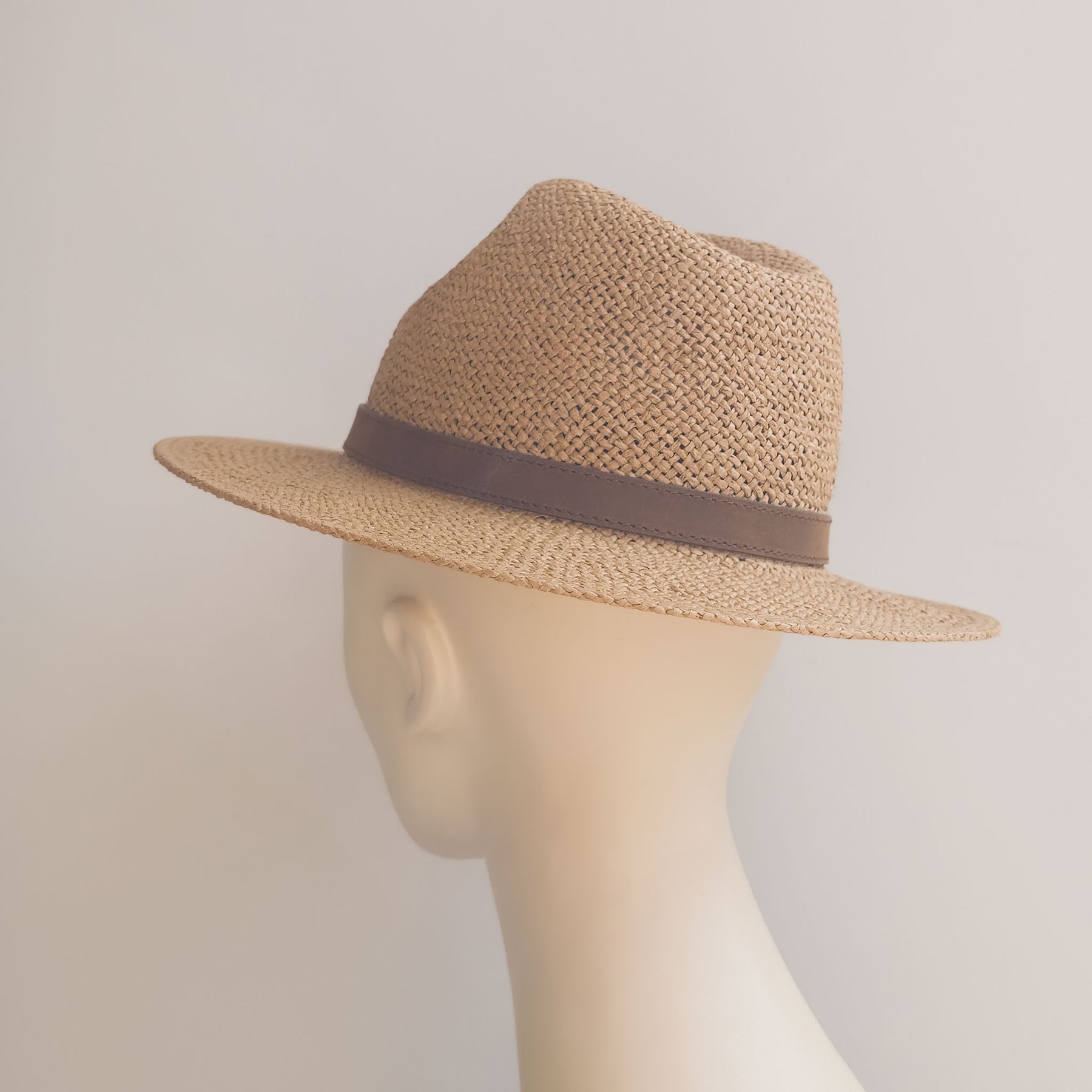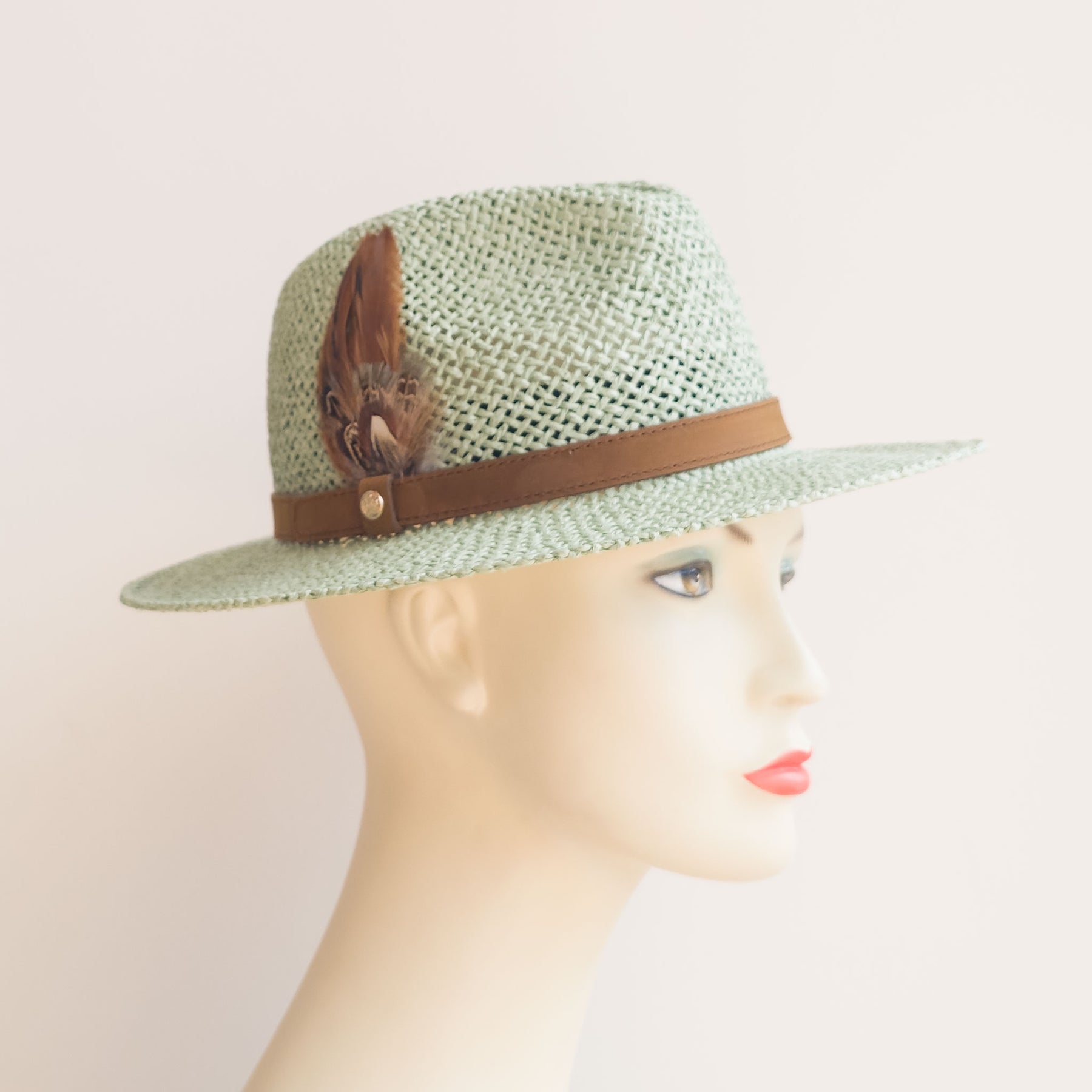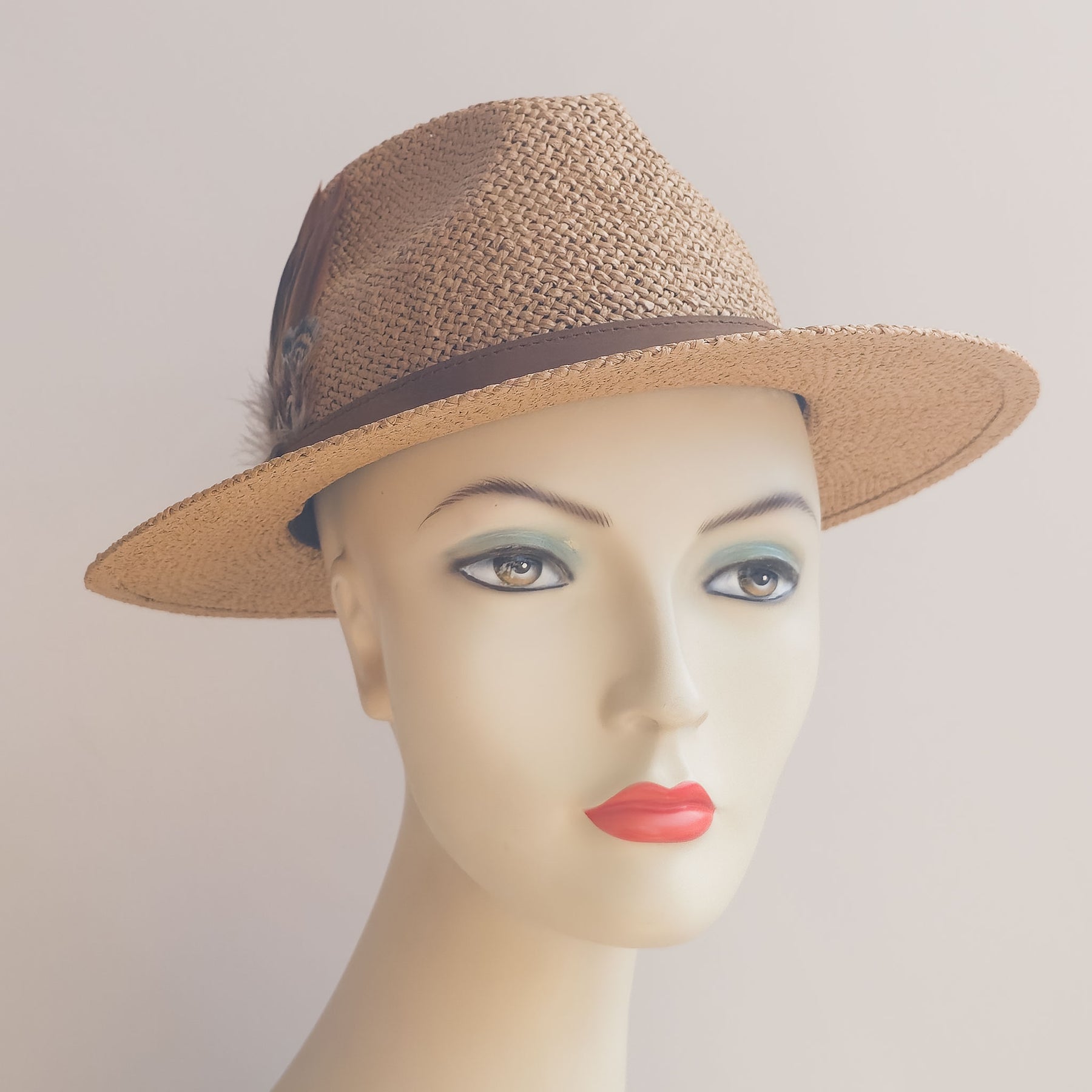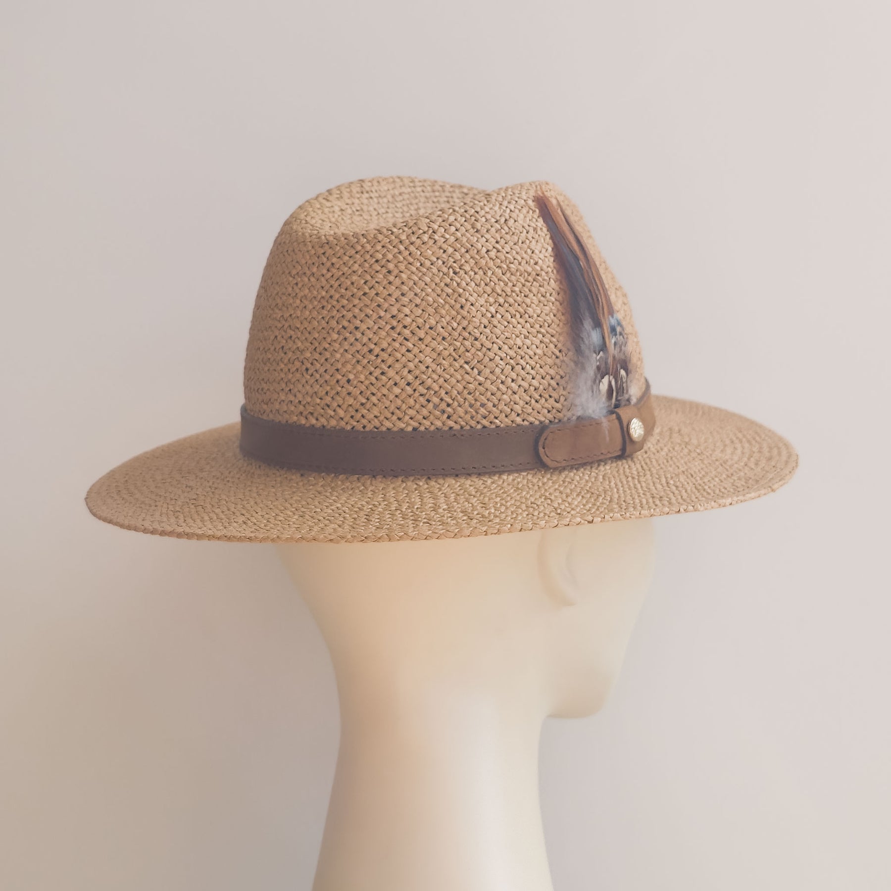 So cool and stylish, this open-weave sunhat in a stylish fedora shape and a choice of three lovely colours is as perfect for wearing on the beach as it is about town or to the Races. The leather band an feather trim gives it a classy finish.