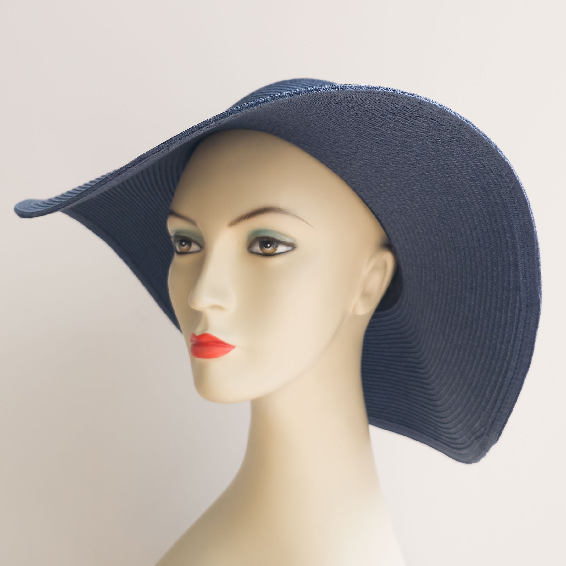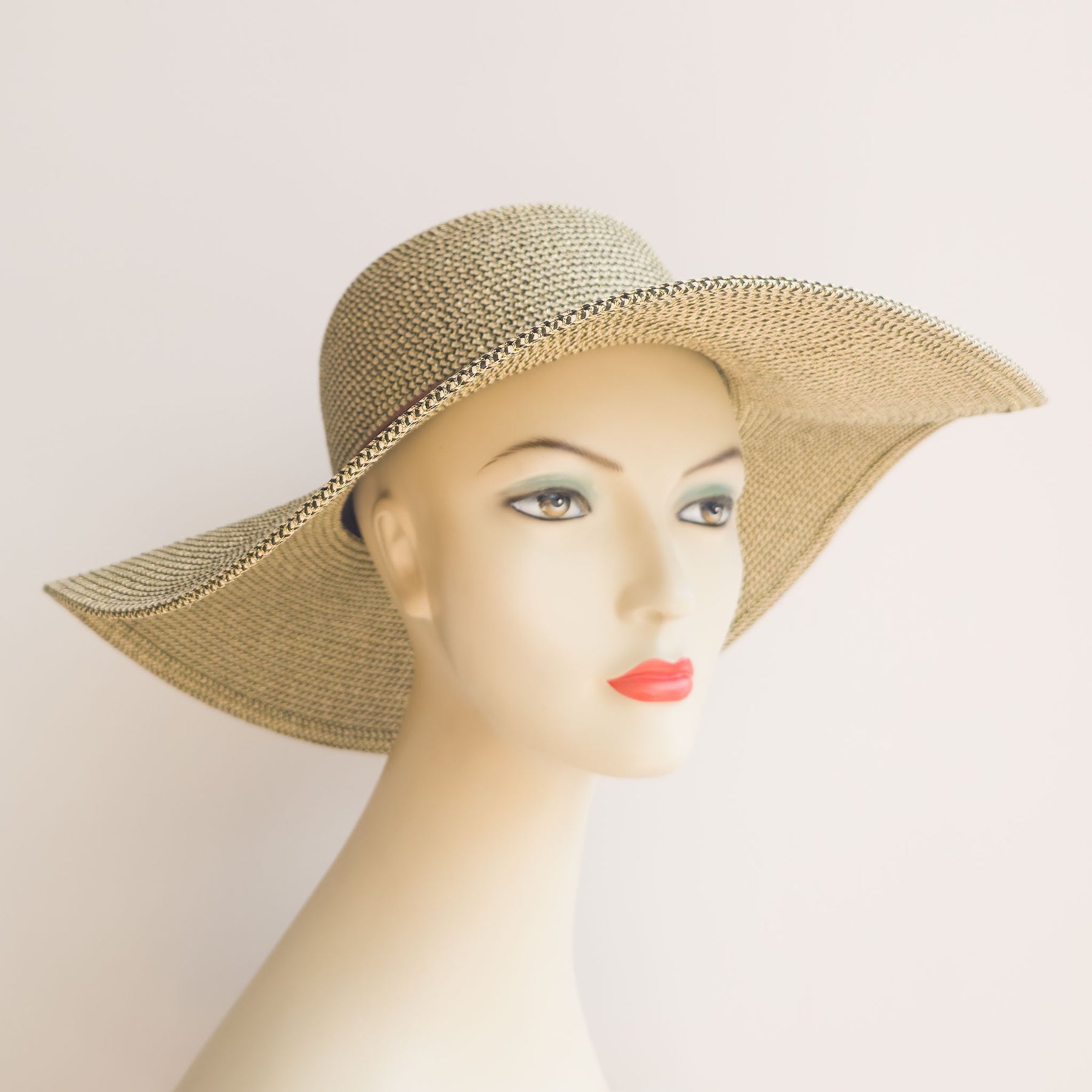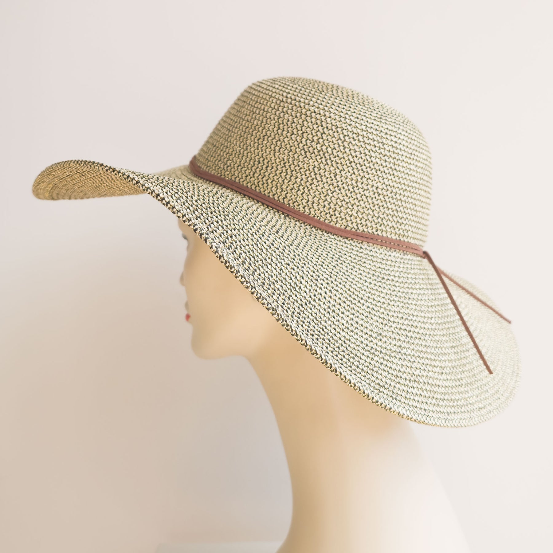 Look terrific whilst shading from the sun in this stylish sun hat with a wide brim and narrow faux leather trim. This floppy hat measures approximately 43cm across its width giving it a chic, retro look. Ideal for holidays, cruising, Ladies Days, for summer weddings and Garden Parties. Designed in England, it is made of cellulose and polyester, comes in One Size and very light, comfortable and secure on the head.