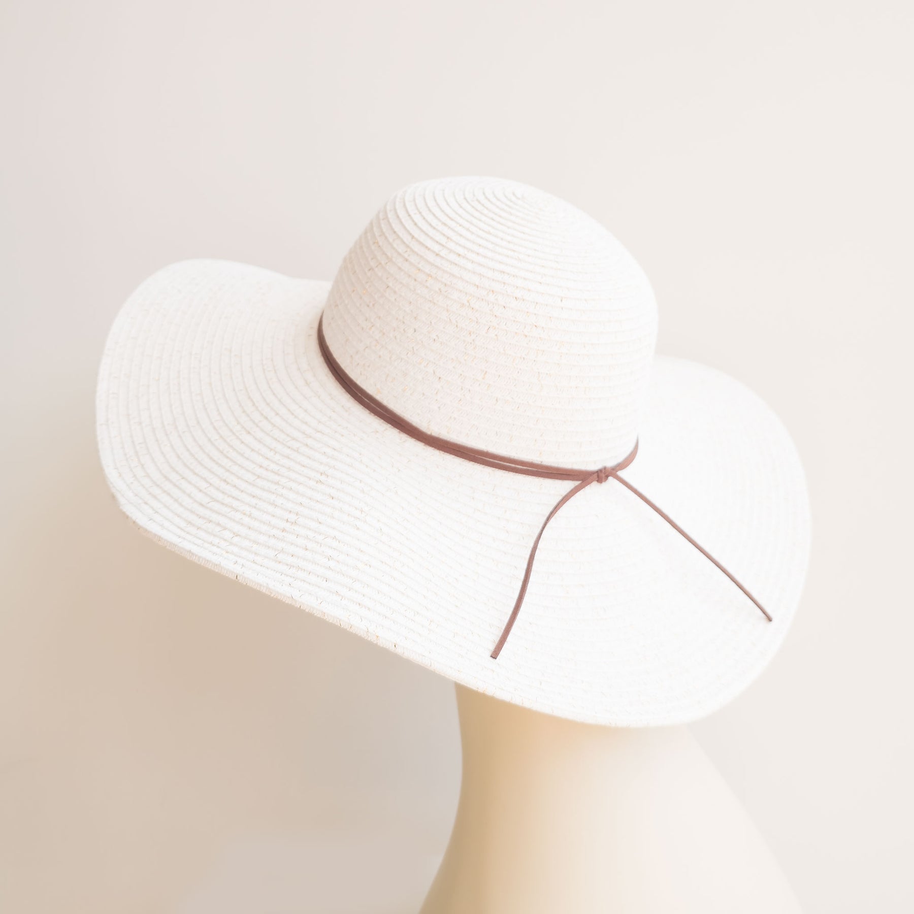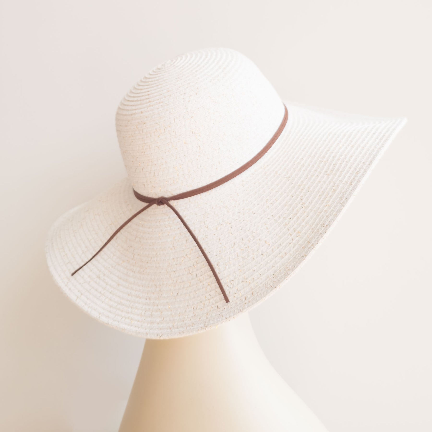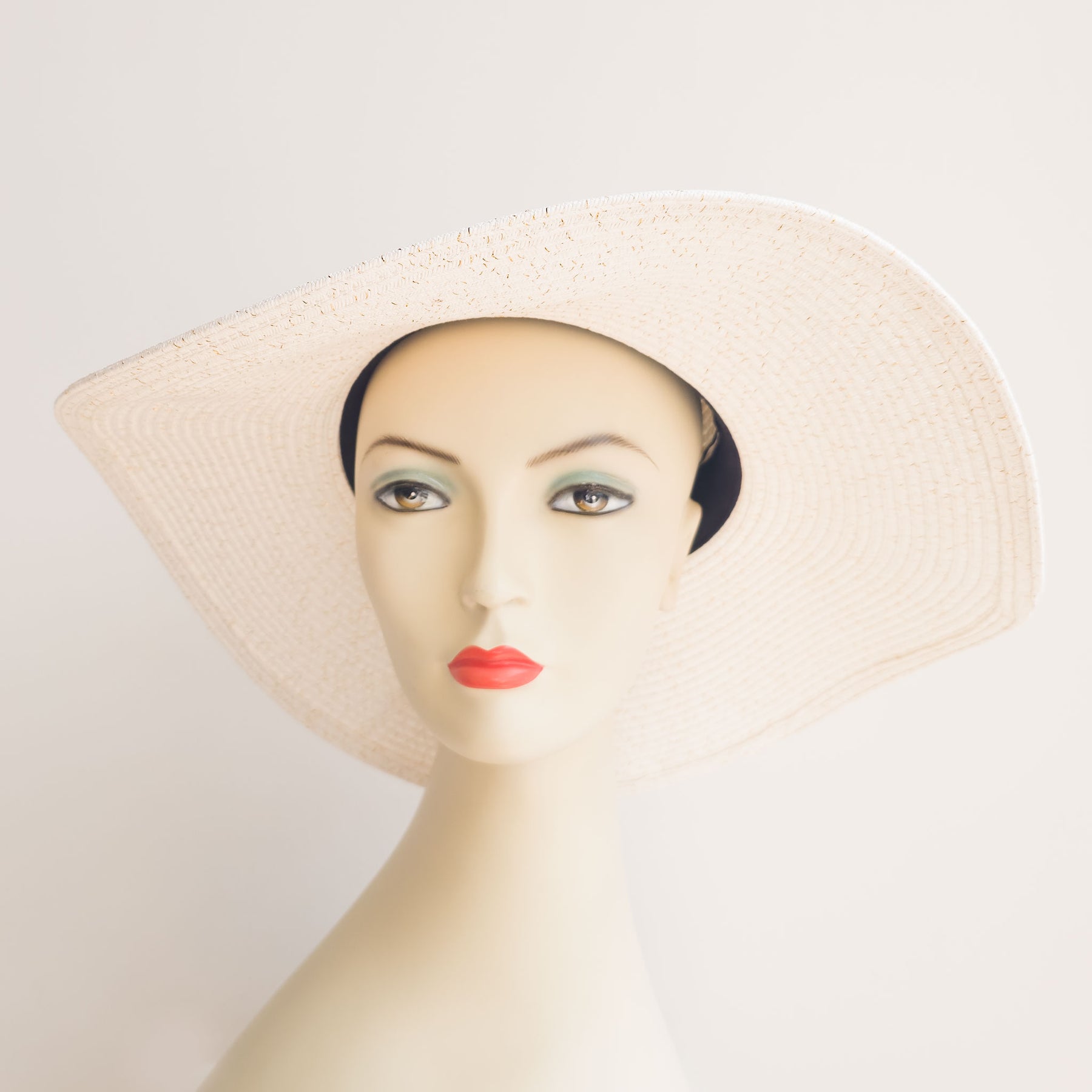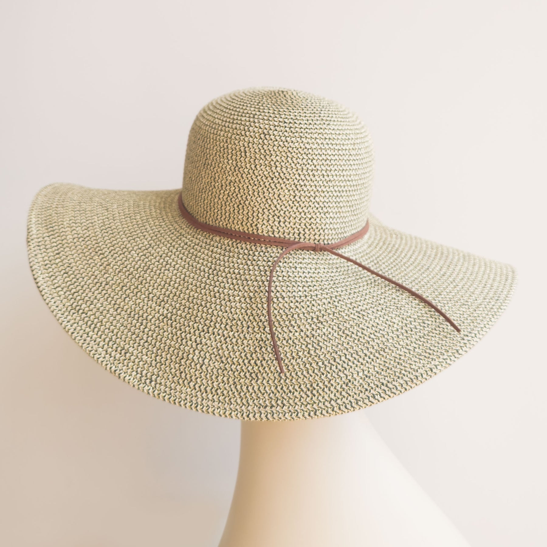 Look terrific whilst shading from the sun in this stylish sun hat with a wide brim and narrow faux leather trim. This floppy hat measures approximately 43cm across its width giving it a chic, retro look. Ideal for holidays, cruising, Ladies Days, for summer weddings and Garden Parties. Designed in England, it is made of cellulose and polyester, comes in One Size and very light, comfortable and secure on the head.